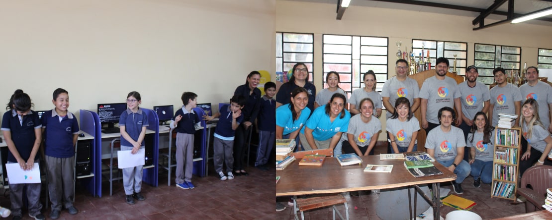 El sábado 20 de mayo visitamos la escuela Leo Nowak de Fernando de la Mora - la cual apoyamos a través de nuestra alianza con la Fundación Dequení - para reacondicionar su biblioteca, a fin de que los chicos de la escuela puedan tener una experiencia mucho más enriquecedora. Gracias a la ayuda de nuestros voluntarios pudimos obsequiar estas mejoras: instalación eléctrica renovada desde cero, instalación de 11 computadoras con sistema operativo y paquete OFFICE + Wikipedia offline, limpieza de pisos, limpieza y reparación de las ventanas, reparación, reacomodación y donación de muebles y orden de libros por secciones.